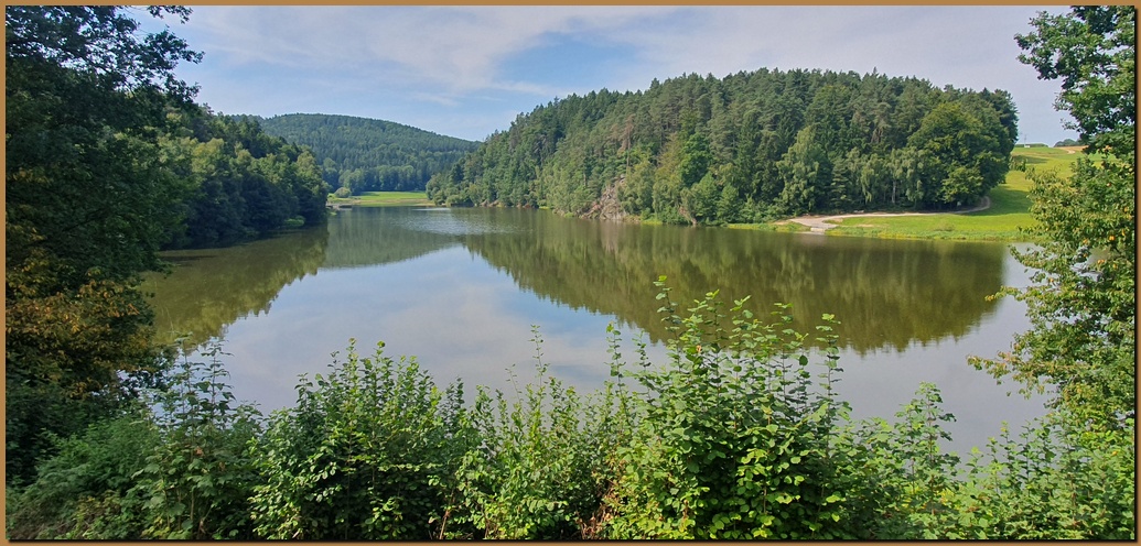 L'ampio bacino artificiale, originariamente creato come bacino di contenimento delle piene del fiume Schwarzach, si trova vicino a Neunburg vorm Wald, nella parte orientale del distretto dei laghi dell'Alto Palatinato. L'imponente ponte lungo 360 metri che attraversa il bacino offre una bella vista sulle acque del lago, lungo sei chilometri e largo in alcuni punti fino a 75 metri. |