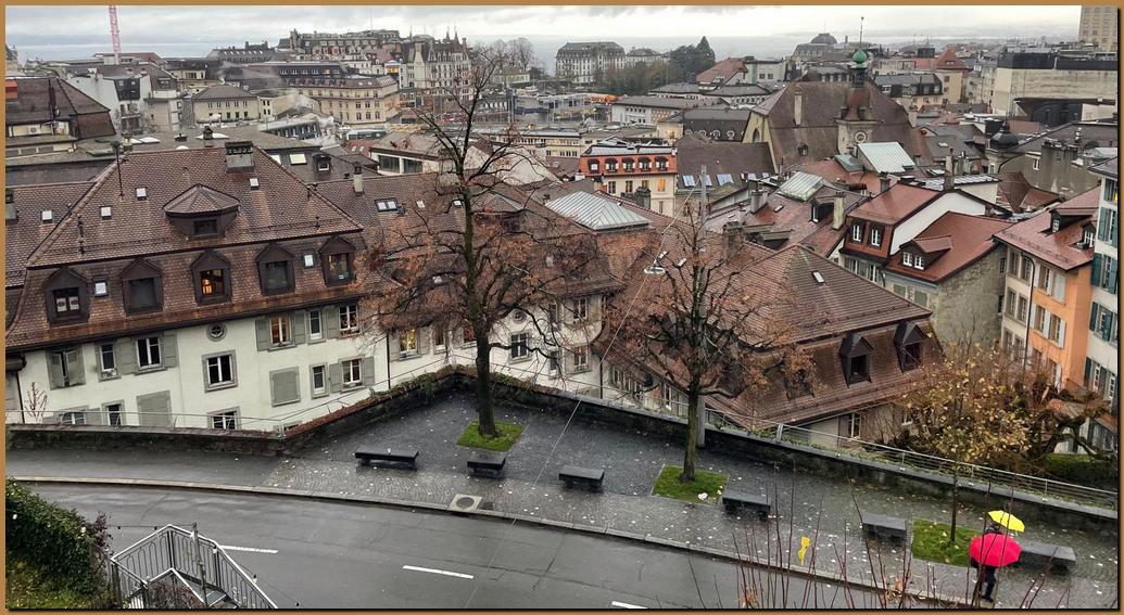 Panorama della cittā dall'esterno della Cattedrale in una giornata uggiosa di dicembre