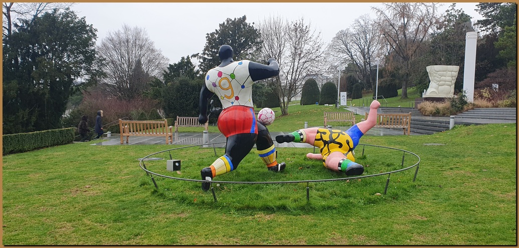 Il museo è circondato da un parco, dove sono esposte varie sculture a tema sportivo, opere di vari autori, quali: Fernando Botero, August Rodin, Niki de Saint Phalle, Jean Tinguely, Lucien Wercollier (Altius).