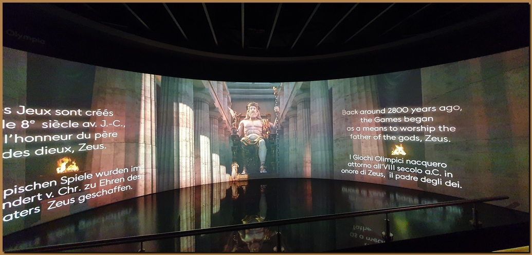 La storia dei Giochi olimpici è illustrata attraverso foto e filmati d'epoca, medaglie originali (donate dagli atleti), francobolli e cimeli vari.