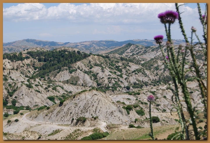 I "calanchi" caratterizzano il paesaggio della Lucania sud-orientale, compreso fra le valli del Sauro, l'Agri ed il Basento.
