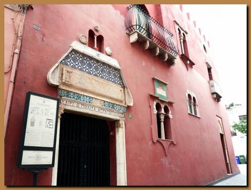 Risalta sulla facciata l'iscrizione in greco di benvenuto ai turisti: “Salve, cittadino del paese dell'ozio”.![]()