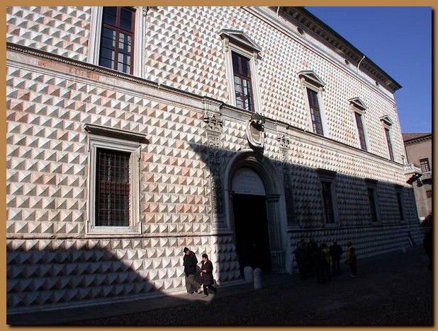 Il Palazzo dei Diamanti, sorto sul finire del '400, ha una bella facciata a bugnato con pietre a punta di diamante (da cui il nome).