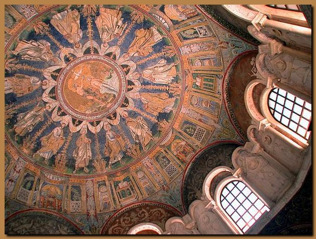 raffiguranti Gesų, gli Apostoli e una serie di simboli religiosi, dal vescovo Neone verso il 450d.C.
