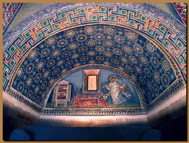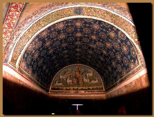 interne, probabilmente le più antiche di Ravenna. I mosaici rivestono completamente le pareti delle volte, delle lunette e della cupola.