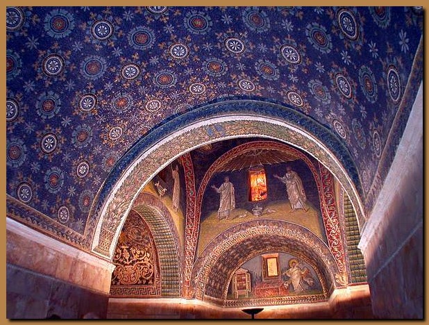Mausoleo, un edificio a forma di croce latina oggi famoso per lo splendore dei suoi mosaici.