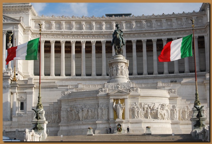 Il complesso del Vittoriano, in perfetto stile neoclassico e costruito con tecniche avanzate per l'epoca, celebra la grandezza e la maestā di Roma, eletta al ruolo di legittima capitale d'Italia, rappresentando l'unitā del paese (Patriae Unitati) e la libertā del suo popolo (Civium Libertati).