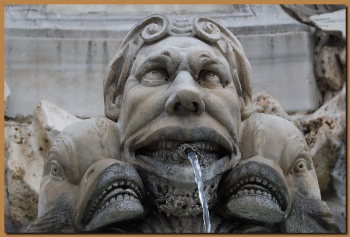 Particolare della fontana che si trova di fronte al Pantheon