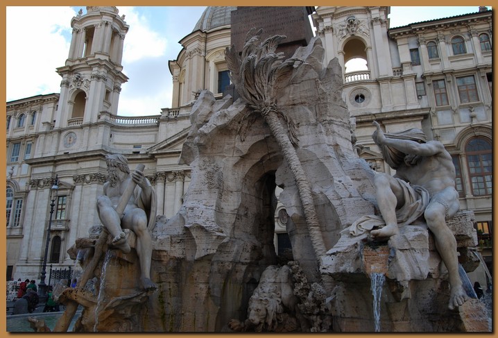 La Fontana dei Fiumi si trova al centro di piazza Navona, davanti alla chiesa di Sant'Agnese in Agone progettata dal Borromini ed è stata ideata dallo scultore e pittore Gian Lorenzo Bernini nel 1651 su commissione di Papa Innocenzo X, in piena epoca barocca, durante il periodo più fecondo di questo artista.