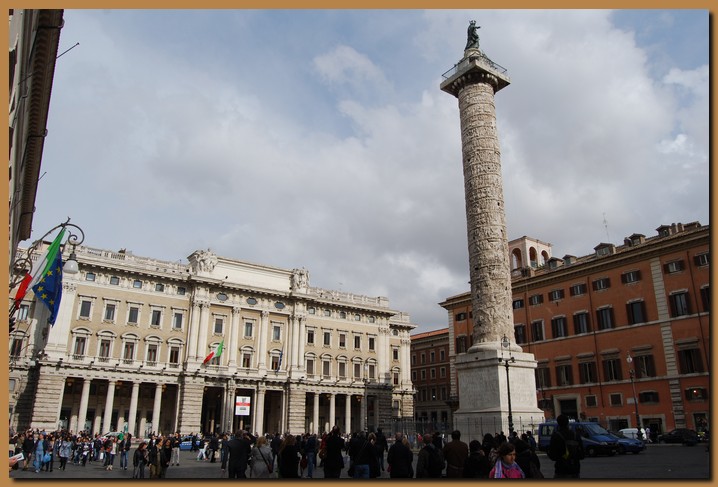A fianco della piazza di Montecitorio si trova Piazza Colonna, chiamata così per via della Colonna di Marco Aurelio. Venne eretta tra il 176 e il 192 per celebrare le vittorie dell'imperatore romano Marco Aurelio ottenute sulle popolazioni germaniche, stanziate a nord del medio corso del Danubio durante le Guerre marcomanniche.