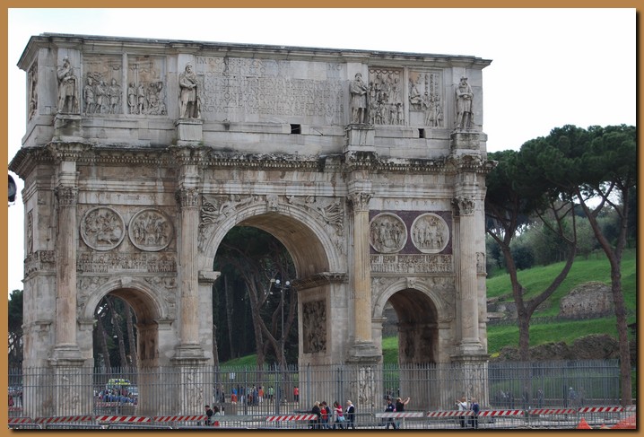 L'arco di Costantino è un arco trionfale a tre fornici (con un passaggio centrale affiancato da due passaggi laterali più piccoli), situato a breve distanza dal Colosseo. Oltre alla notevole importanza storica come monumento, l'Arco può essere considerato come un vero e proprio museo di scultura romana ufficiale.