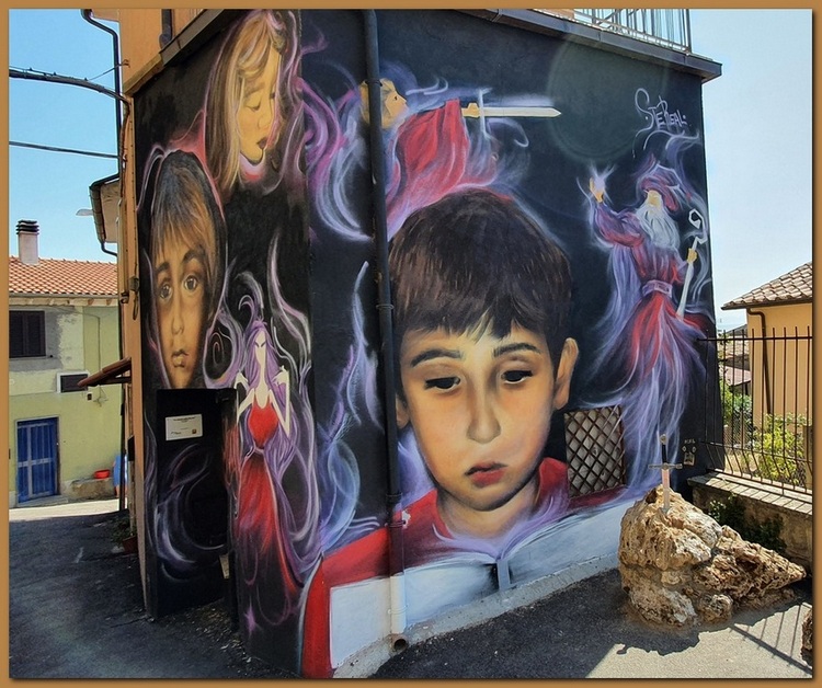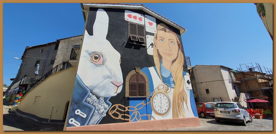 C'era una volta...un paese spopolato, da cui i pochi giovani rimasti se ne andavano in cerca di un futuro. Poi, è arrivata l'idea di Gianluca Chiovelli, della sorella Paola e del cugino Alessandro: trasformare Sant'Angelo di Roccalvecce in un museo delle fiabe a cielo aperto. Il primo murale ad inaugurare il ciclo è stato quello di Alice: sta nella piazza principale e il suo orologio segna le 11 e 27 minuti perché è stato inaugurato il 27 novembre del 2017. E da allora è diventato davvero il paese delle meraviglie