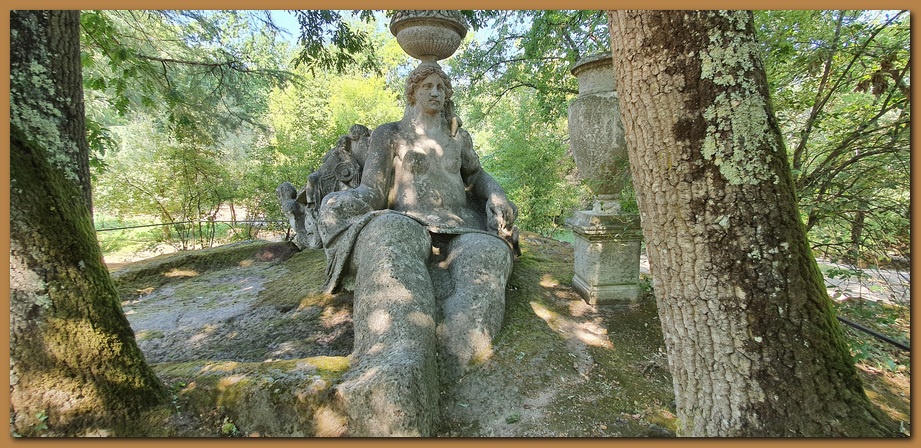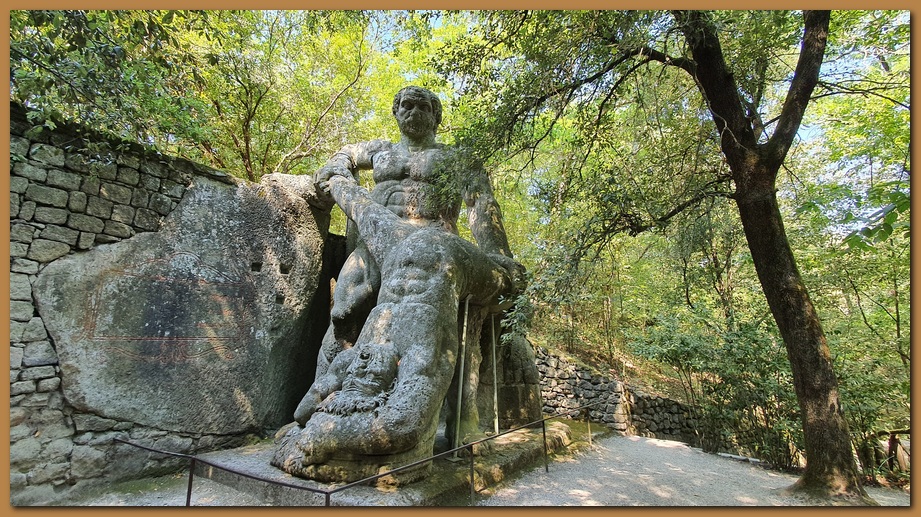 Questa gigantesca scultura rappresenta quasi con certezza un episodio dell'Orlando Furioso: l'eroe, assalito dalla follia a causa della passione per Angelica, si è liberato delle armature, e le sparge nei campi. Incontra un pastorello che aveva l'unico torto di contendergli il passo e lo squarta tenendolo per i piedi.![]()