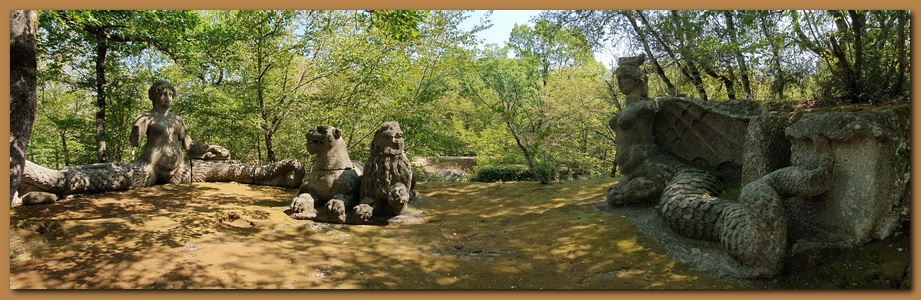 Grande villa, parco naturale, disseminata di gigantesche sculture ricavate nei blocchi di peperino affioranti dal terreno, il Sacro Bosco (detto anche Parco dei Mostri) costituisce uno dei più misteriosi luoghi d'Italia. L'aspetto inquietante o quantomeno mostruoso delle raffigurazioni è in linea con il clima di decadenza manieristica (ed esoterismo) che pervadeva la cultura e la moda dei giardini di metà cinquecento. Realizzato da Vicino Orsini a metà 1500, come rappresentazione di un mondo esoterico da lui immaginato, a seguito della lettura di poemi cavallereschi di suoi contemporanei (quali l'Orlando Furioso dell'Ariosto e l'Amadigi di Bernardo Tasso, pubblicato proprio in quel tempo).