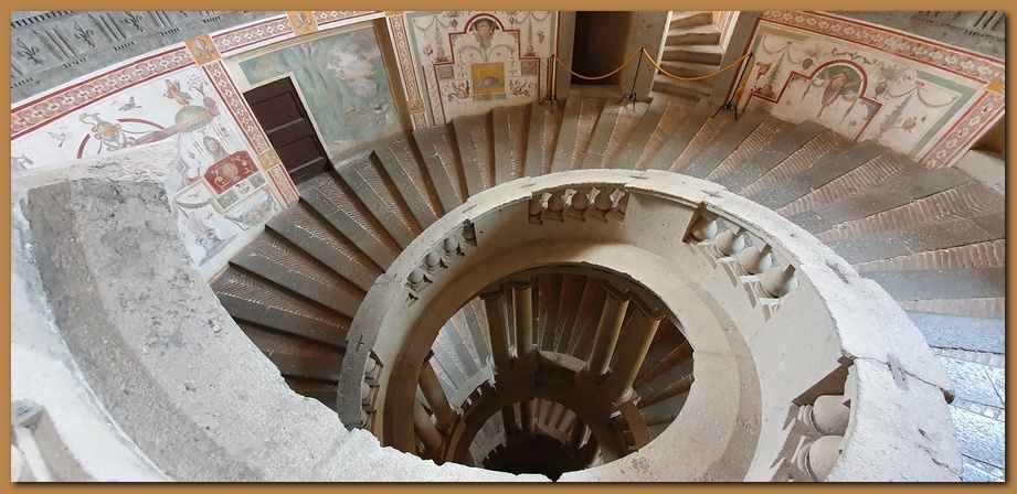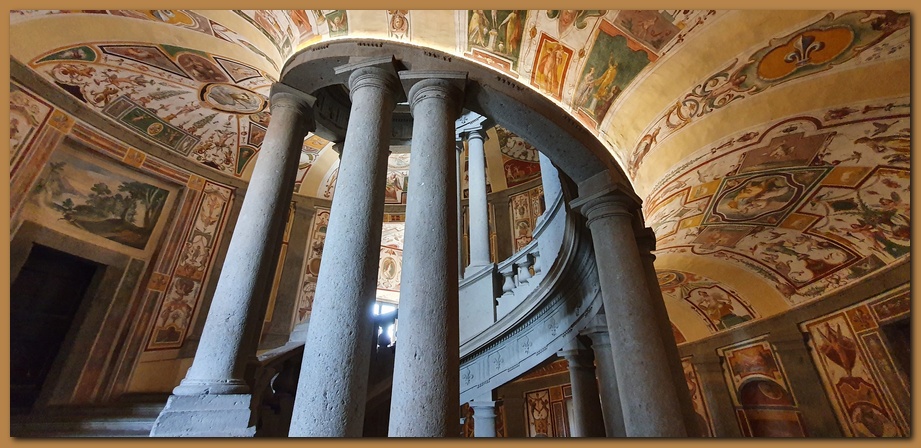 Al suo interno si svolge la famosa Scala Regia (una rampa elicoidale poggiante su 30 colonne, affrescata anch'essa e di comoda salita (pare che il cardinale la percorresse a cavallo per recarsi nella sua camera da letto).![]()