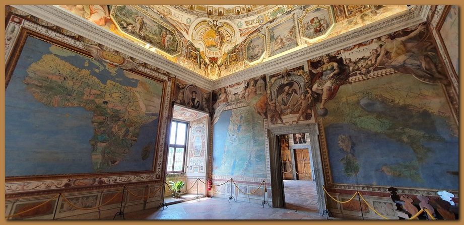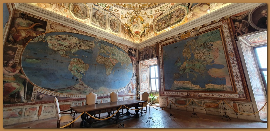 La splendida "Sala del Mappamondo", dove è rappresentato il mondo allora conosciuto dalle descrizioni dei viaggiatori. Piuttosto accurato, dato i mezzi a disposizione in quell'epoca.![]()