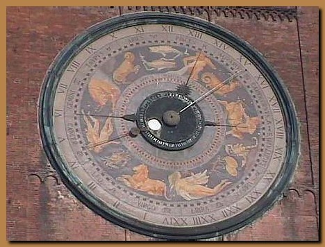 innalzata nel 1267. Nella foto un particolare dell'orologio della torre, che oltre alle ore segna anche