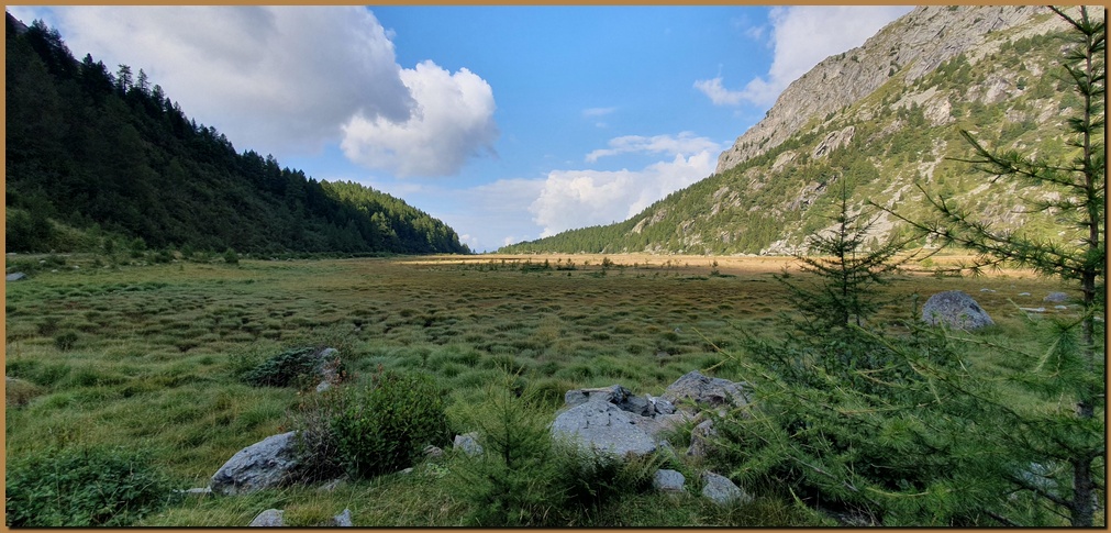 La Piana che la contraddistingue è un perfetto mondo orizzontale sovrastato da ghiacciai e alte cime di rocce grigie e rosse, solcato dalle spettacolari anse del fiume Duino che si snoda al suo interno come un gigantesco serpente. Siamo a 2000 metri, in un ambiente d'alta montagna, dominato dal Monte Disgrazia che, con i suoi 3678 metri, è la vetta più alta della valle e che, adagiate ai suoi piedi, conserva le nevi perenni del ghiacciaio di Predarossa .