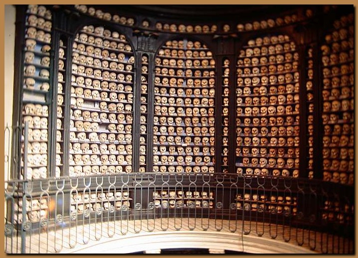 La tetra esposizione di teschi all'interno dell'ossario di S.Martino della Battaglia (in provincia di Brescia), teatro della guerra di indipendenza.
