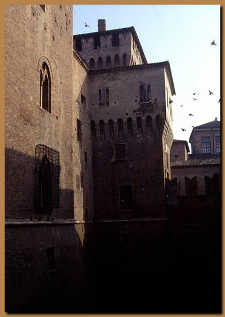 nel mezzo, racchiuso tra quattro corpi di fabbrica e quattro torri possenti.