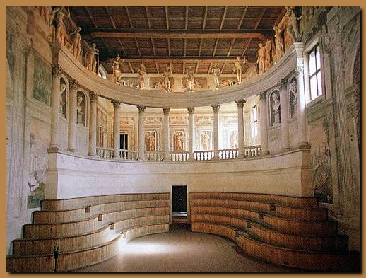Il Teatro all'antica (1588-1590) nasce come edificio autonomo. Internamente presenta un loggiato con colonne