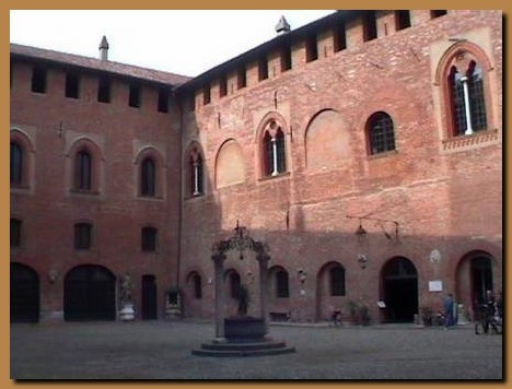 Elegante e possente costruzione di origine medioevale, ampliata e rimaneggiata da Regina della Scala, moglie di Bernabò Visconti, per farne la propria residenza. Ha forma rettangolare, quattro torri di difesa sugli spigoli ed eleganti finestre gotiche, ornate di decorazioni in cotto, che si aprono sulle facciate laterali. Sull'ingresso si erge uno slanciato maschio. Nell'interno è ospitato il Museo Storico Artistico, composto di 27 sale, che conserva arredi, armi, dipinti, sculture e ceramiche.