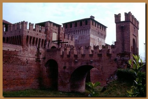 Rocca (visitabile), edificata in laterizi, è composta di due corpi di fabbrica e quattro massicce