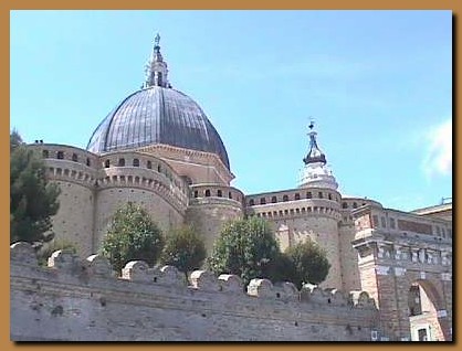 La "cittā santa" di Loreto č situata su un colle, cinta in parte da mura del XVI secolo (nella foto),