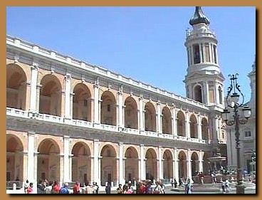 sovrastata dal santuario della Santa Casa, di cui si intravede la cupola (costruita nel '400).