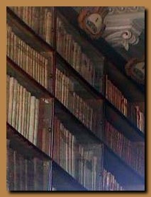 A sinistra: uno scorcio della biblioteca all'interno del Palazzo Leopardi. Sono
