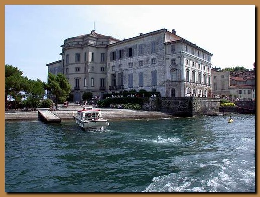 Il Palazzo Borromeo (foto dal battello) venne costruito tra il 1632 e il 1700. Disposto su tre piani, contiene al suo interno sontuosi saloni riccamente ornati.