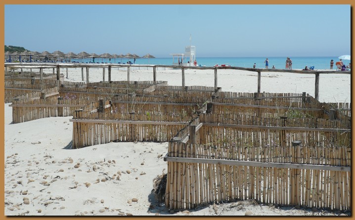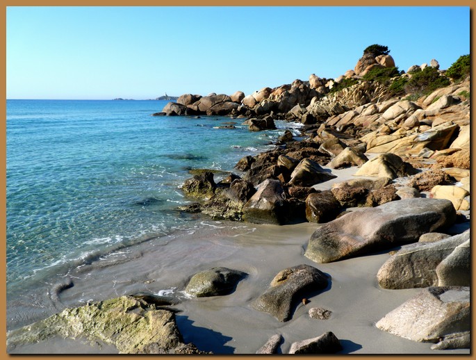 Lungo le coste è possibile intravedere le numerose torri e fortificazioni testimonianza dei pericoli che nei secoli passati arrivavano dal mare (nei pressi di Capo Carbonara (foto) la Torre di Porto Giunco). Filippo II re di Spagna, per affrontare il problema, decise di realizzare delle torri vedetta a forma tronco conica, armate di artiglierie, avente un unico piano e unico accesso tramite fune, posto ad alcuni metri di altezza dal suolo (veniva poi ritirata in caso di attacco). L'isola dei Cavoli (sullo sfondo) dista circa un chilometro da punta di Capo Carbonara e deve il suo nome ad un cavolo selvatico dalle caratteristiche infiorescenze bianche, il Brassica Insularis, molto comune sull'isola. |