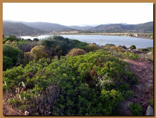 La laguna vista da un sentiero che la costeggia e che conduce alla spiaggia.