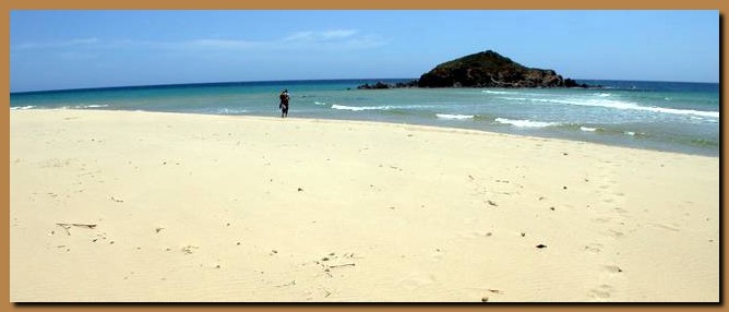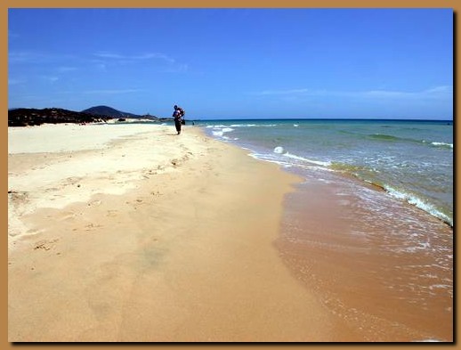 La bianchissima spiaggia libera a ovest di Capo Spartivento