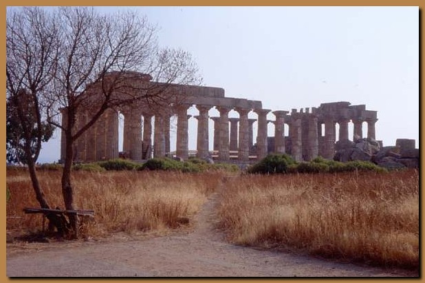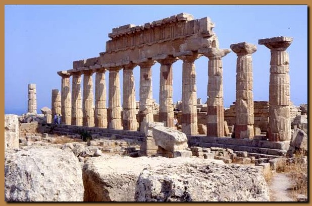Fondata dalla colonia greca di Megara Iblea nella seconda metà del VII secolo a.C., prese il nome del fiume Selinos. Venne abbandonata nel 250 a.C. La completa rovina degli edifici si deve ad una scossa tellurica avvenuta in età altomedievale. Nella foto il tempio E, il più meridionale del gruppo dei templi orientali; è un edificio del 460-450 a.C. in stile dorico; il perimetro era colonnato e la cella preceduta dal pronao, con metope scolpite a figure mitiche. |
