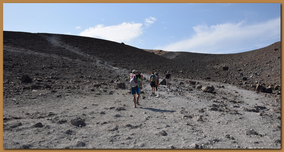 La salita (400-500 m di dislivello circa) si snoda tra terreno sabbioso, roccioso, vulcanico, con la vegetazione che via via lascia il posto a radure più desertiche.