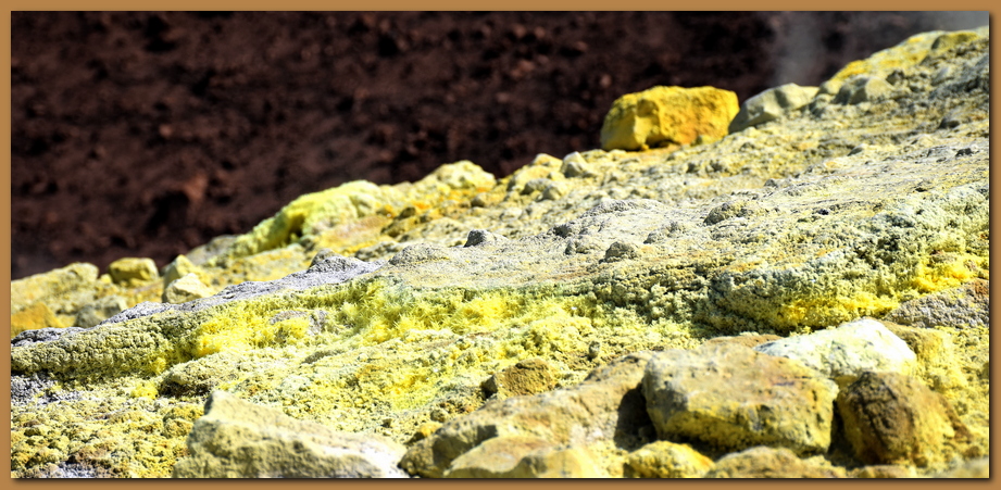 I cristalli di zolfo che si formano in prossimità delle fumarole sono un vero e proprio spettacolo della natura
