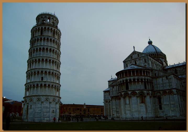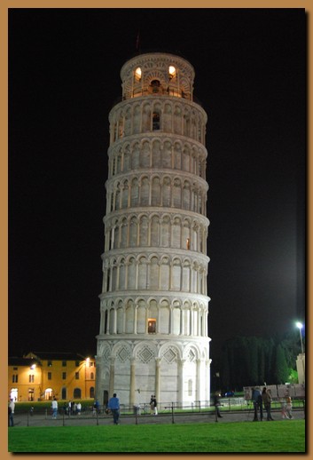 L'inclinazione dell'edificio attualmente misura 3,99° rispetto all'asse verticale. La torre di Pisa rimane in equilibrio perché la verticale che passa per il suo baricentro cade all'interno della base di appoggio. È stata proposta come una delle sette meraviglie del mondo moderno. |