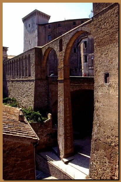 Le ciclopiche arcate dell'acquedotto fungono da entrata al borgo medievale.