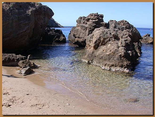 Ai lati della spiaggia sabbiosa alcuni scogli abbelliscono il panorama generale.