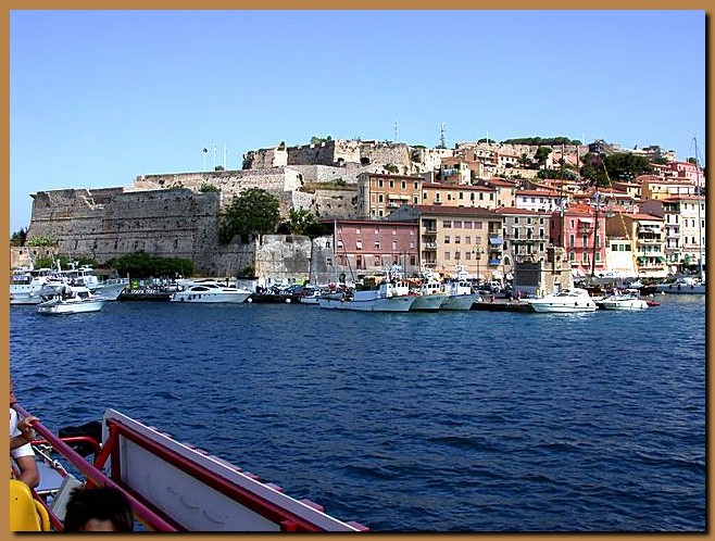 La cittadina merita una sosta per visitare il cinquecentesco Forte Stella. Si può visitare la casa dove soggiornò Napoleone durante il suo primo esilio (1814-15) (Villa dei Mulini), ancora arredata con mobili dell’epoca. Più in alto sorge il Forte Falcone, anch’esso cinquecentesco. |