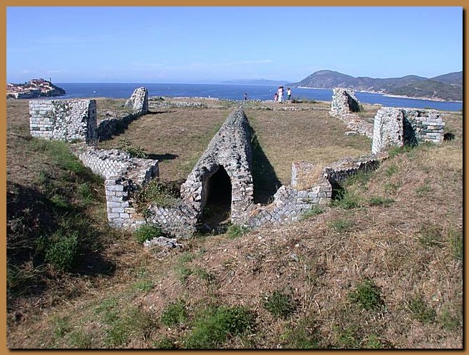 Questa villa delle Grotte fu costruita nel I sec. a.C. Dal IV al VI secolo, ormai in rovina, fu nuovamente abitata, probabilmente da monaci eremiti. Nel periodo 1799-1802 l'Elba fu teatro di confronto fra francesi e i presidi fedeli al Granduca di Toscana aiutati da insorti elbani e dalla marina britannica. In quei difficili anni i muri perimetrali dalla villa furono abbattuti per installare una batteria di cannoni da assedio. |
