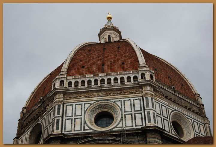 La celebre cupola del Brunelleschi costituisce la copertura della crociera del Duomo di Firenze; è la più grande cupola in muratura mai costruita (diagonale maggiore della cupola interna:45 m, quella dell'esterna: 54m.