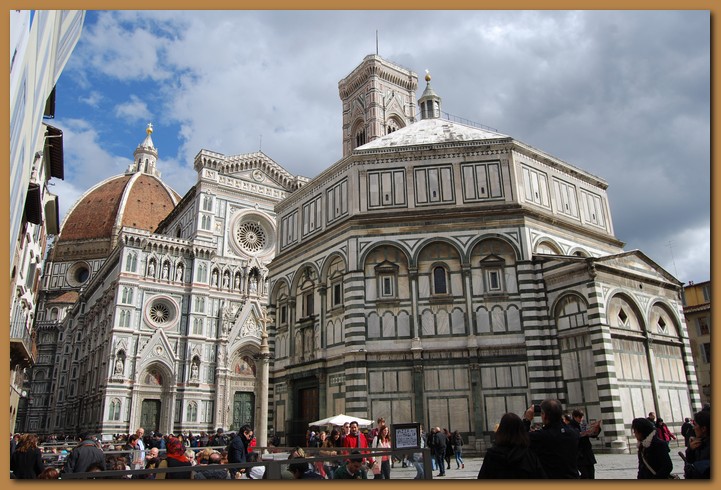 Il Battistero dedicato a San Giovanni Battista, patrono della città di Firenze, sorge di fronte al Duomo di Santa Maria del Fiore, in piazza San Giovanni. Inizialmente era collocato all'esterno della cerchia delle mura, ma fu compreso, insieme al Duomo, nelle mura realizzate da Matilde di Canossa ("quarta cerchia"). In origine era circondato da altri edifici, come il palazzo Arcivescovile che arrivava molto più vicino, i quali vennero abbattuti per creare l'attuale piazza. Il battistero si trova fra Piazza del Duomo e Piazza San Giovanni, fra il Duomo e l'Arcivescovado, nel centro religioso della città. La facciata principale dell'edificio ottagonale è rivolta verso il Duomo, mentre l'abside si trova verso ovest.