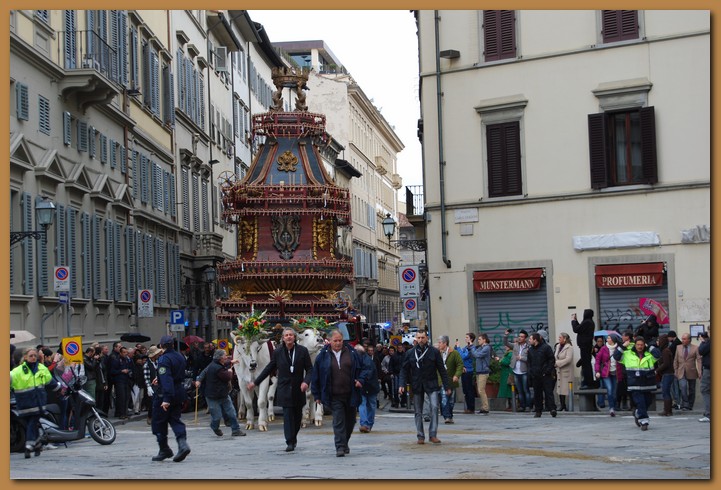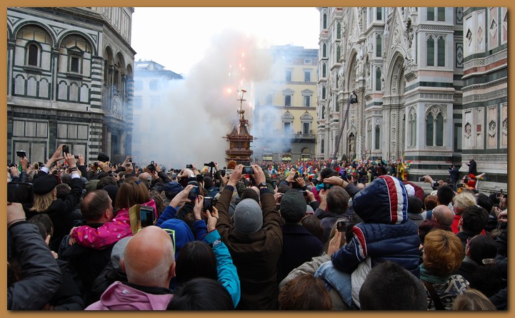 Come da tradizione di ogni Domenica di Pasqua, Firenze celebra alle ore 12 lo Scoppio del carro in piazza del Duomo. Questa nota cerimonia fiorentina risale addirittura ai lontani tempi della prima crociata, indetta per liberare il Santo Sepolcro dalle mani degli infedeli. Si pensa che la cerimonia abbia un certo legame con il culto del fuoco che dalle antiche culture pagane, passò a quelle cristiane.
