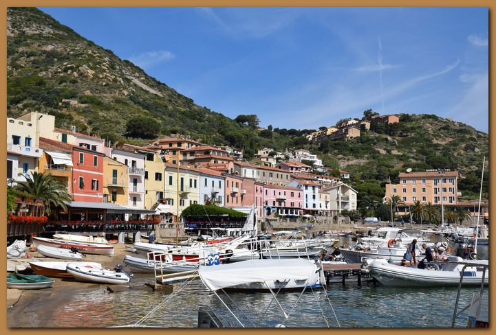 Giglio Porto è oggi un piccolo centro abitato molto caratteristico, con casette colorate e strette tra loro, a formare vicoli e viottoli, disposte parallele su tutto il versante che si affaccia sul mare, i due caratteristici fari che troneggiano sui rispettivi moli e l'antica Torre del Saraceno (1596) - foto