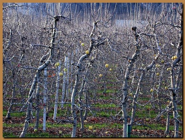 Piantagioni di mele, di cui la Val Venosta č famosa, si estendono a perdita d'occhio nella valle circostante facendo immaginare che cosa non deve essere questa terra in primavera.