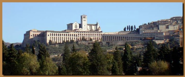 Sulla sinistra invece si intravede il Sacro Convento che fu eretto insieme alla Basilica trasformato nel '400, con l'aggiunta di poderose costruzioni sulla scarpata. |