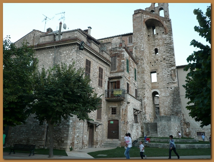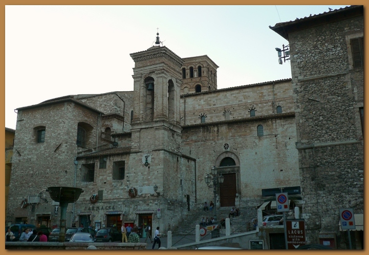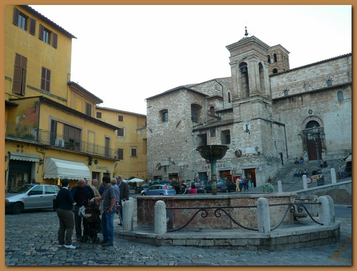 Tra i principali monumenti presenti nella città: la Cattedrale romanica, nella quale si trovano opere del Rossellino e di altri famosi artisti, la chiesa di San Francesco, sorta nel XIII sec., con notevoli affreschi di scuola locale, Palazzo dei Priori, costruito nel 1275 probabilmente da Gattapone da Gubbio e posto nella omonima piazza medioevale. In questa piazza si trova anche il Palazzo Comunale, costruito nel 1273 con l'unione di tre torri, nel quale si possono ammirare: l'Incoronazione della Vergine, realizzata nel 1486 dal Ghirlandaio, il San Francesco Stigmatizzato dello Spagna, l'Annunciazione di Benozzo Gozzoli e una Mummia Egizia del IV secolo a.C. In fondo alla piazza si trova una fontana del 1303.