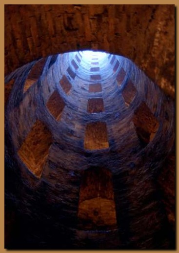 per attingere acqua dal fondo. Le due scale elicoidali indipendenti servivano a non far intralciare